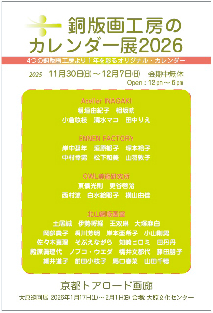 銅版画工房のカレンダー展 2026 11月30日(日) 〜 12月7日(日) 会期中無休 |